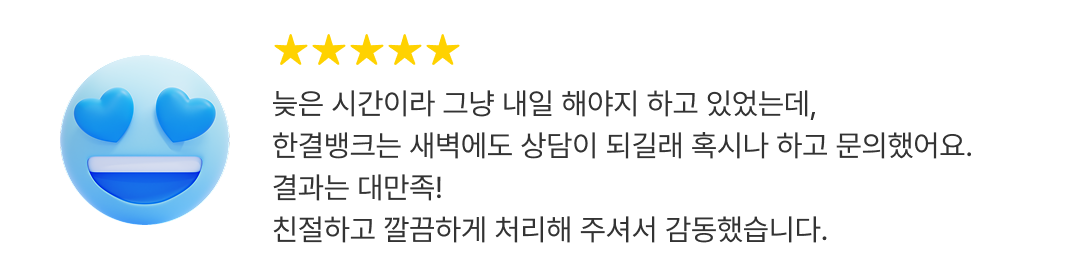 실제 한결뱅크를 이용하신 고객님들의 후기
